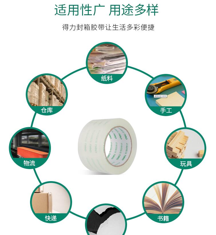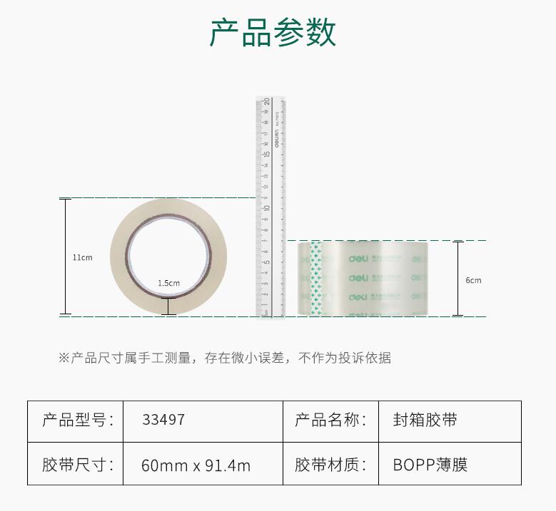 得力33497高透明膠帶 1筒6卷 封箱大號(hào)4.8/6cm寬膠帶大卷快遞可定制打包批發(fā)膠布封口固定高粘度不易斷6卷裝封箱膠帶